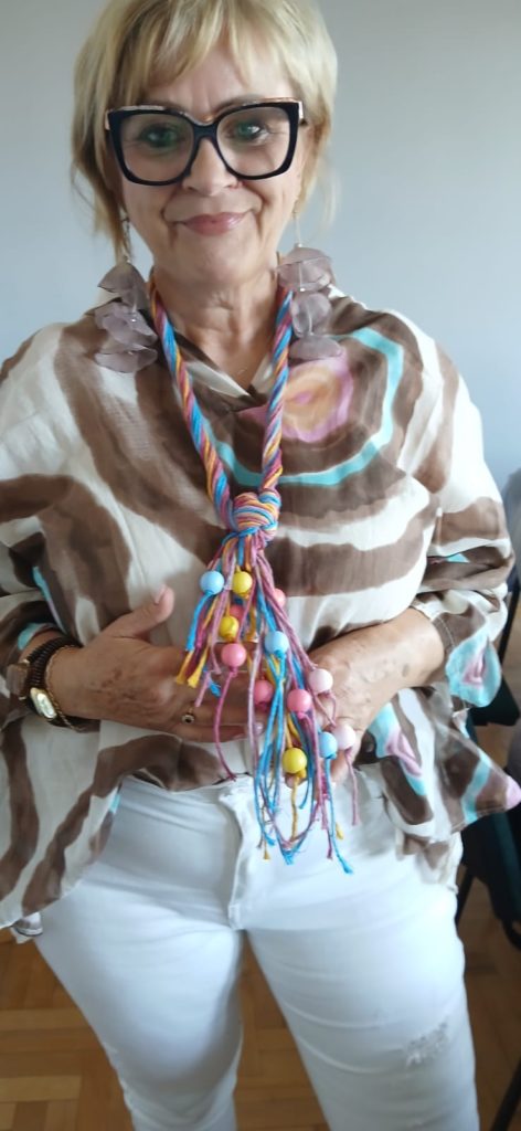 Każdy z uczestników miał swój własny pomysł, jedni tworzyli eleganckie ozdoby, inni postawili na formy bardziej artystyczne i dekoracyjne. Naszyjniki mogą pełnić różne funkcje, być ozdobą stroju podczas letnich spotkań, urozmaiceniem wystroju mieszkania, a nawet miłym prezentem dla bliskiej osoby.