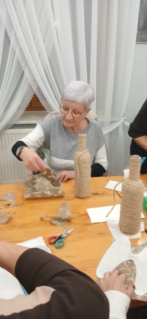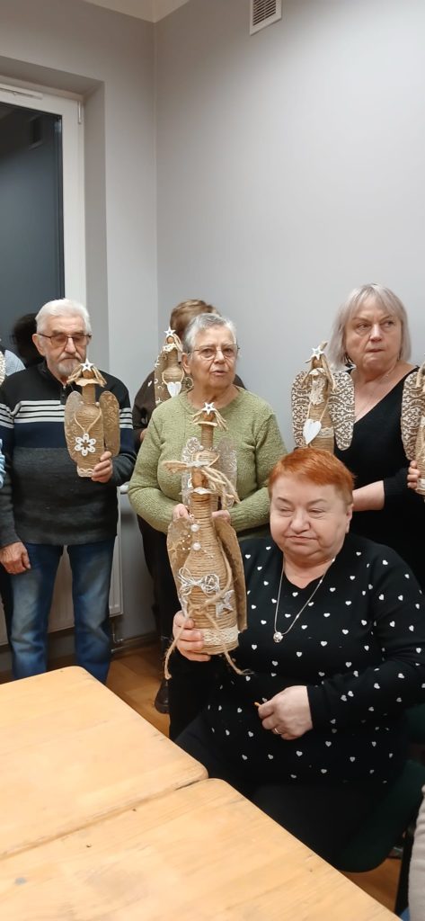 Każdy anioł był wyjątkowy – pełen detali, pomysłowości i osobistego zaangażowania. Seniorzy z ogromnym zapałem i radością tworzyli swoje dzieła, a uśmiech na twarzach i satysfakcja z efektów pracy mówiły same za siebie. Dla wielu uczestników był to nie tylko twórczy czas, ale także chwila refleksji i radości z nadchodzącego świątecznego okresu.