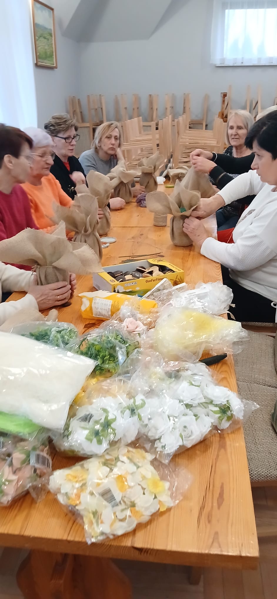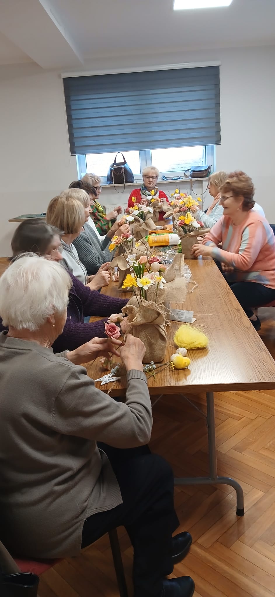 Pierwsze spotkania miały charakter artystyczny – seniorzy wykonywali stroiki wielkanocne. Uczestnicy z dużym zaangażowaniem i entuzjazmem przystąpili do pracy, wykazując się ogromną kreatywnością i pomysłowością.